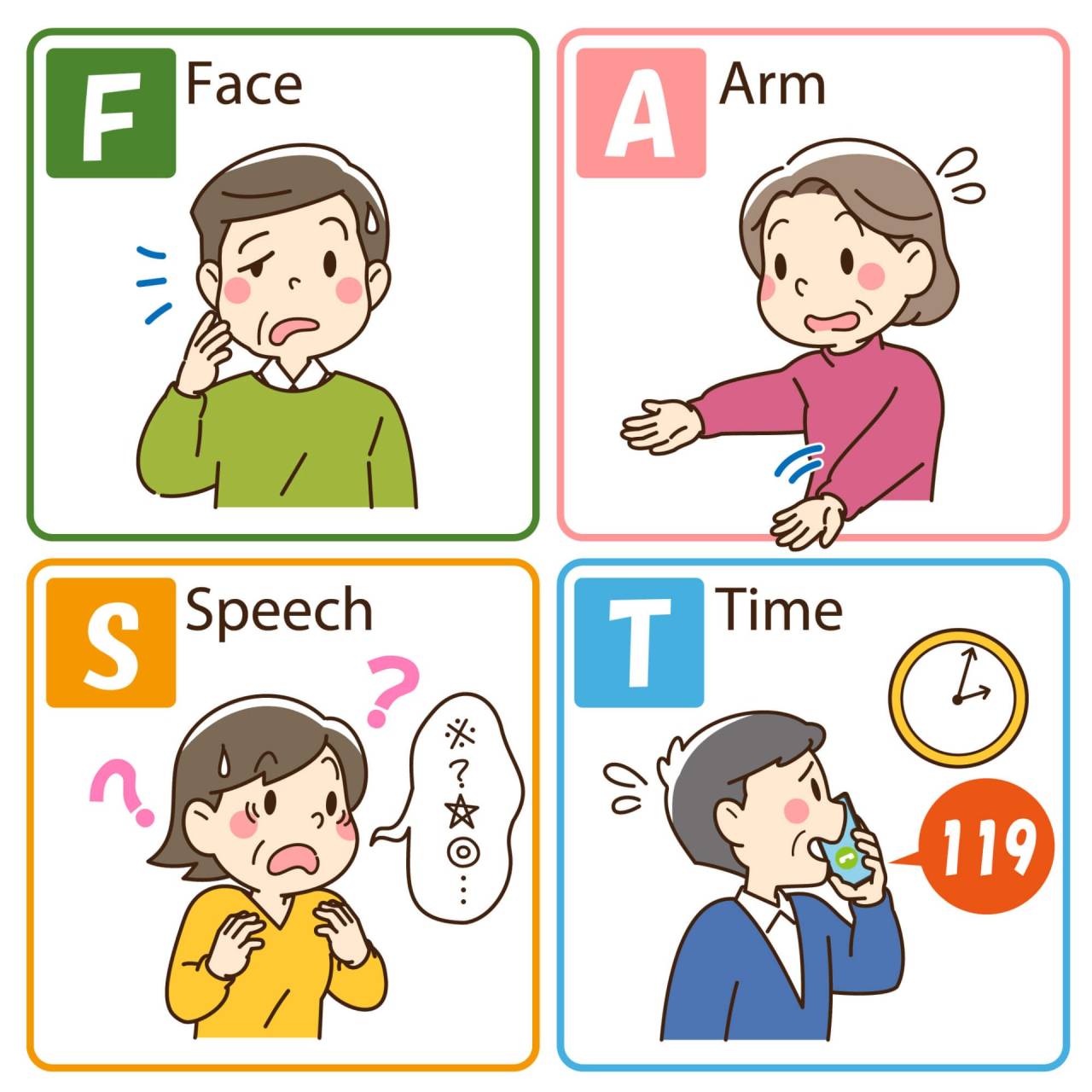 脳卒中の初期症状をいち早く見抜くための合言葉「FAST」について解説します。